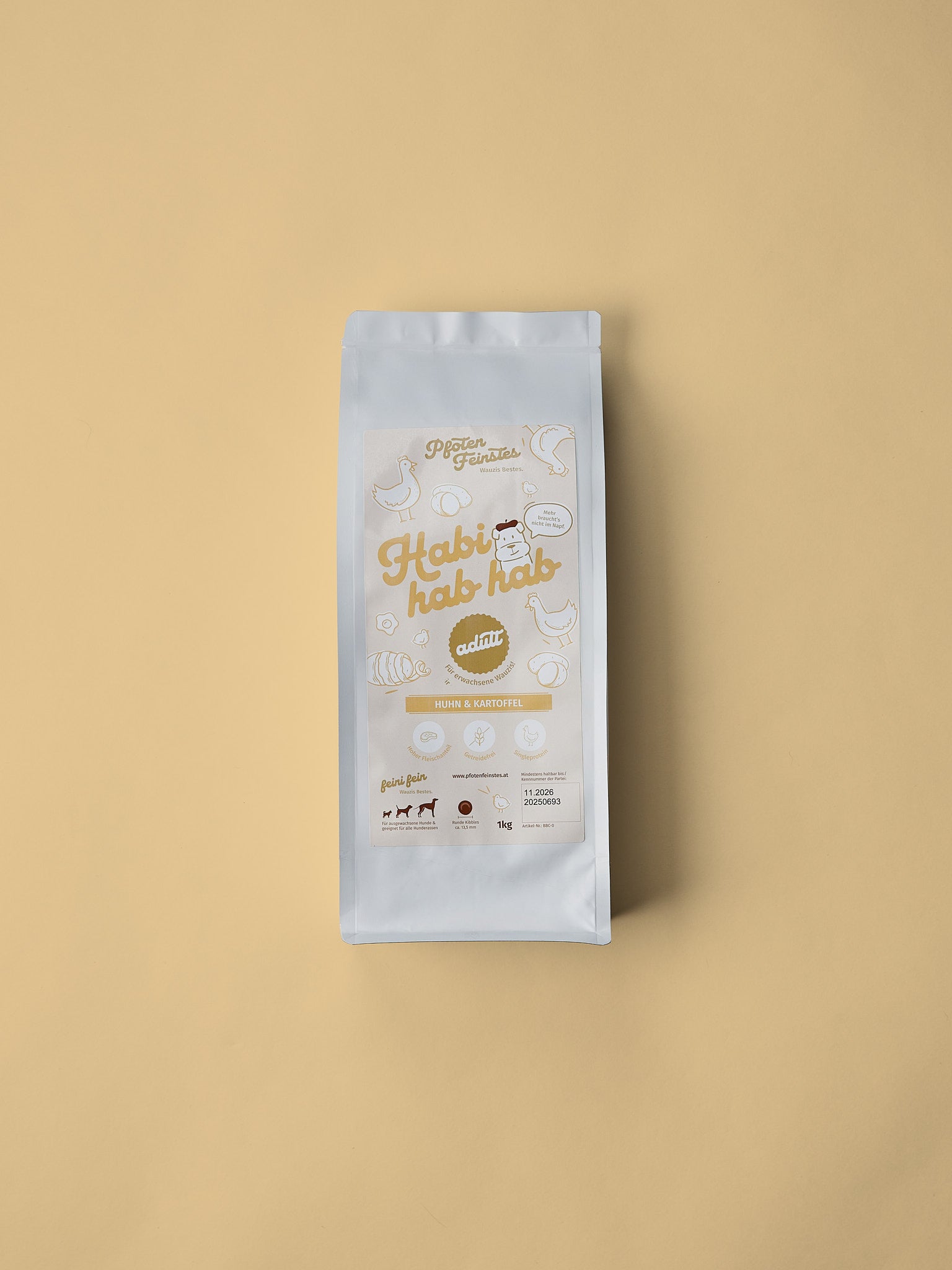 HUHN & KARTOFFEL adult ist ein getreidefreies Trockenfutter mit 42,5 % frischem Huhn für erwachsene Hunde. Es ist als vollwertiges Alleinfuttermittel konzipiert.