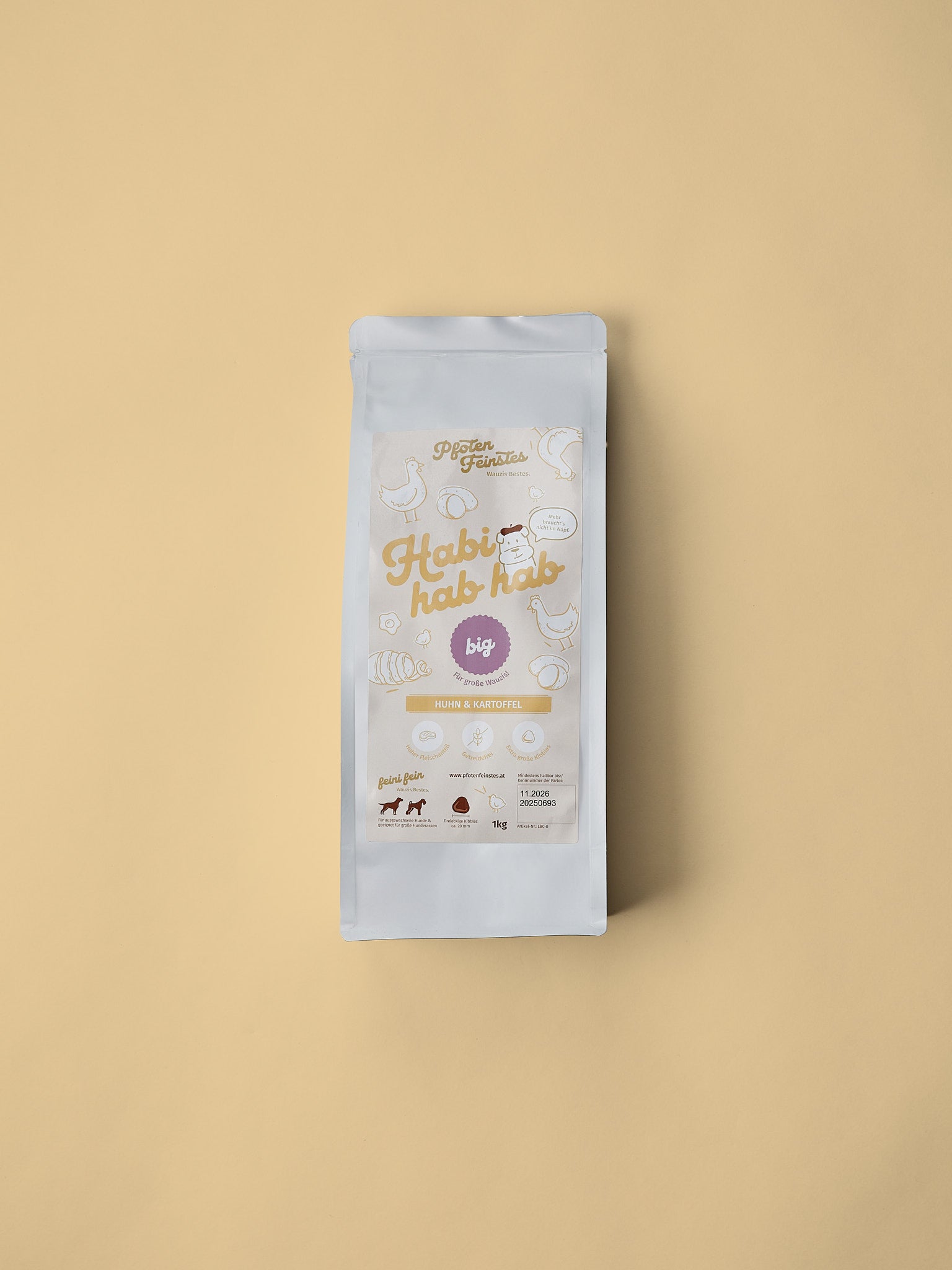 Unser HUHN & KARTOFFEL big wurde speziell für große Hunderassen entwickelt. Die großen Dreieckskroketten (ca. 20 mm) fördern langsameres Fressen und gesunde Kaubewegungen. Mit einem hohen Fleischanteil und getreidefreier Rezeptur bietet das Futter ein natürliches, vollwertiges Menü für kräftige Hunde.
