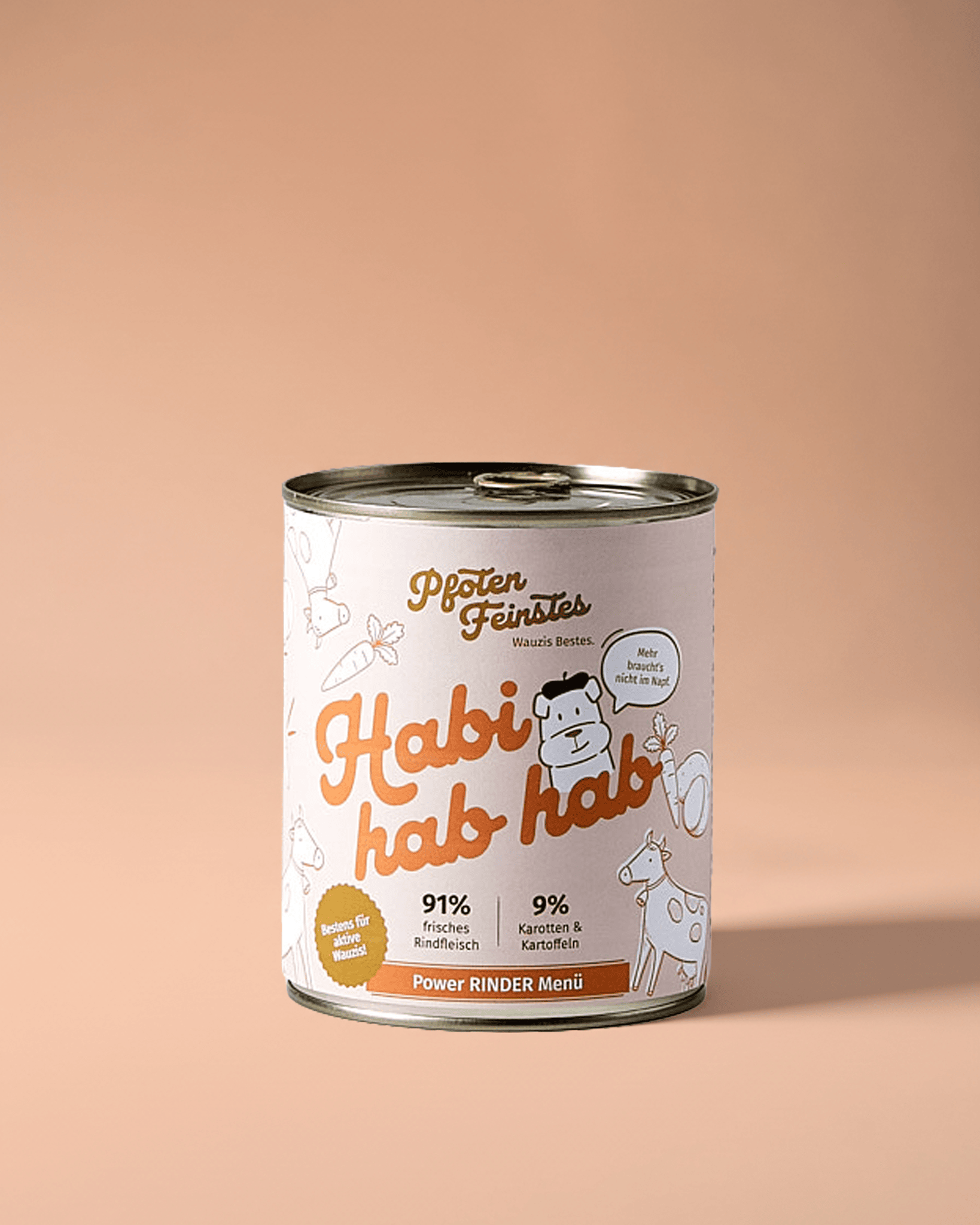 Das Power RINDER Menü ist ein getreidefreies Nassfutter mit 91 % Rindfleisch und Innereien. Es ist als Single-Protein-Alleinfuttermittel konzipiert.