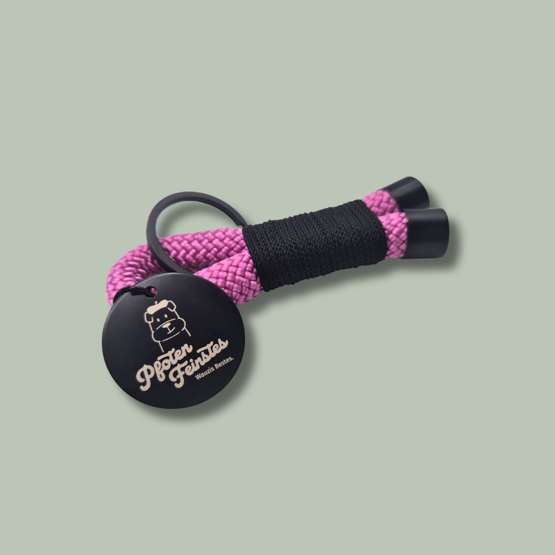 Das zarte Rosa setzt einen femininen Akzent, während das Schwarz für Tiefe und Ausdruck sorgt. Ob als hochwertiger Schlüsselanhänger für Haus- oder Autoschlüssel oder als perfekt abgestimmtes Accessoire zur Hundeleine – Samtrose vereint Stil, Persönlichkeit und Alltagstauglichkeit.